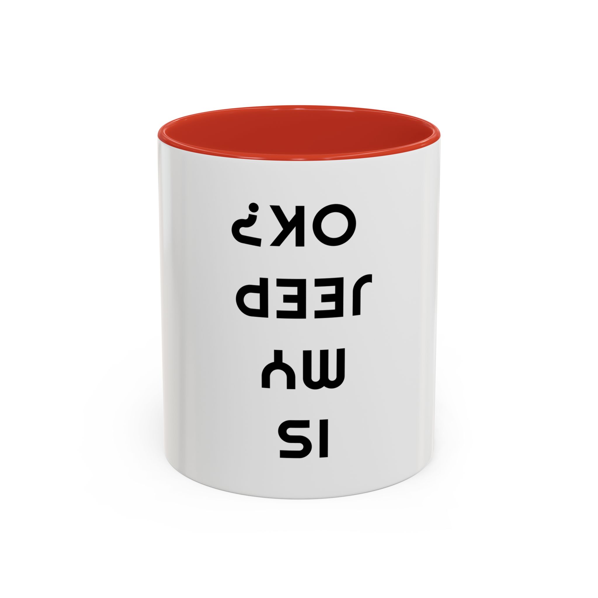 Is My Jeep OK? – White Accent Coffee Mug